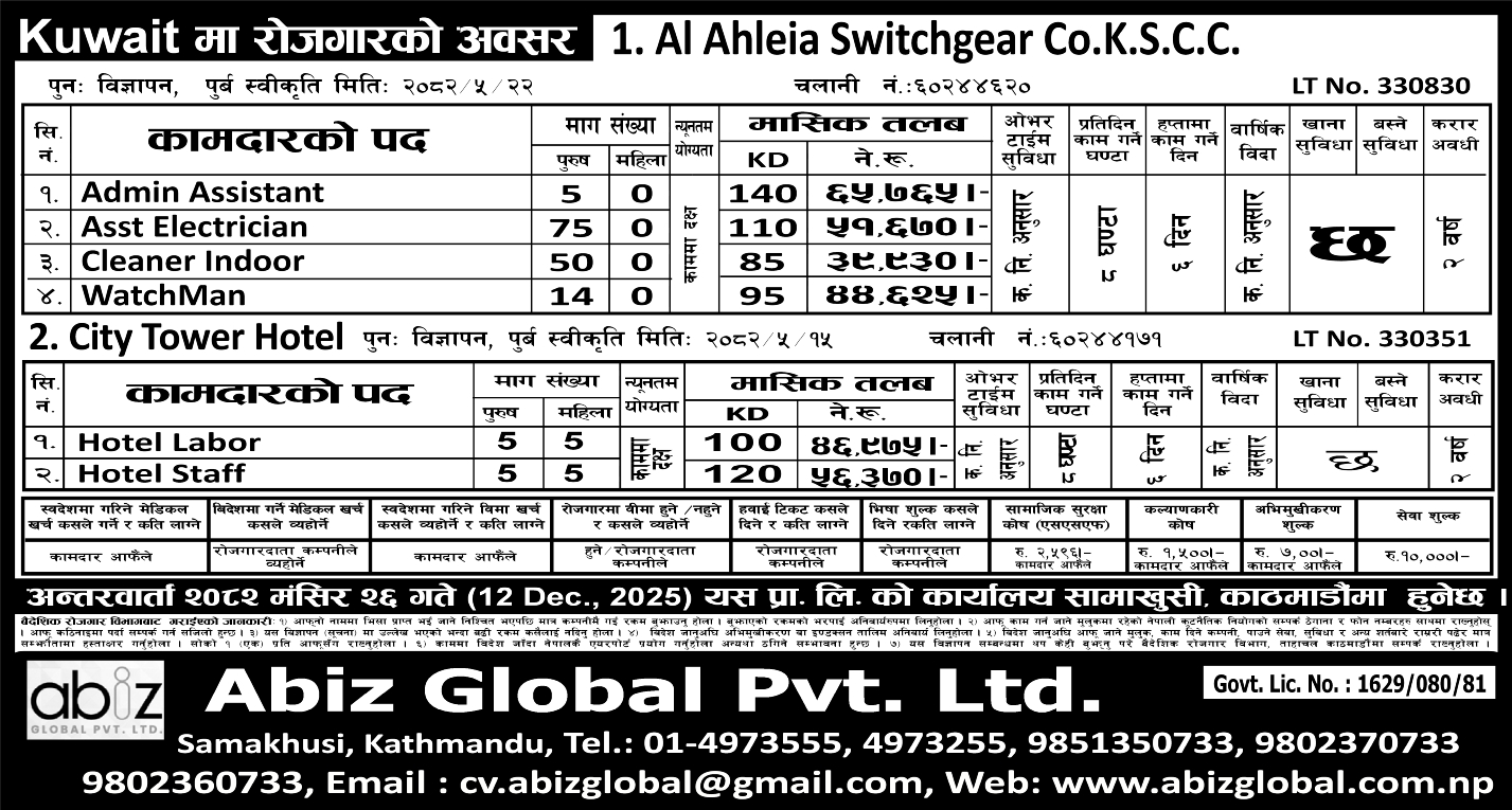 Abiz Global Nepal is a multi-functional, multi-faculty, cross-industry global leading Executive Search firm, based in Nepal.